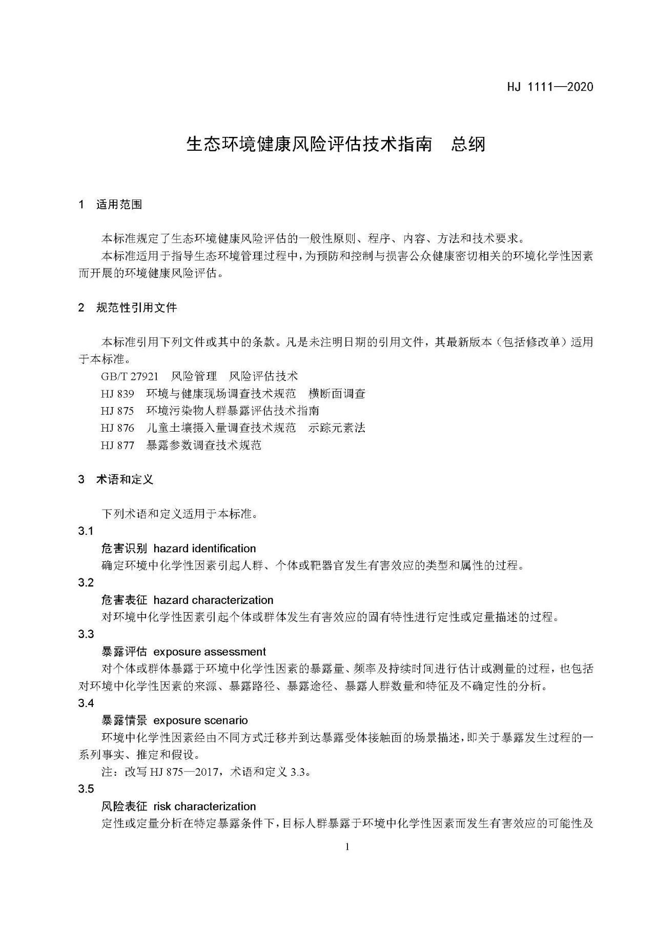 生態(tài)環(huán)境健康風險評估技術指南 總綱(HJ 1111—2020)